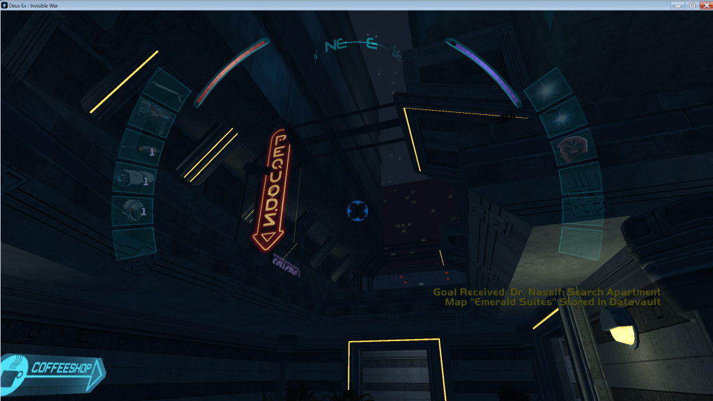 At the moment I’m not sure how much longer I’ll stick with this. If Seattle doesn’t show me it’s worth my time in short order, this may be the first Deus Ex game I DNF.